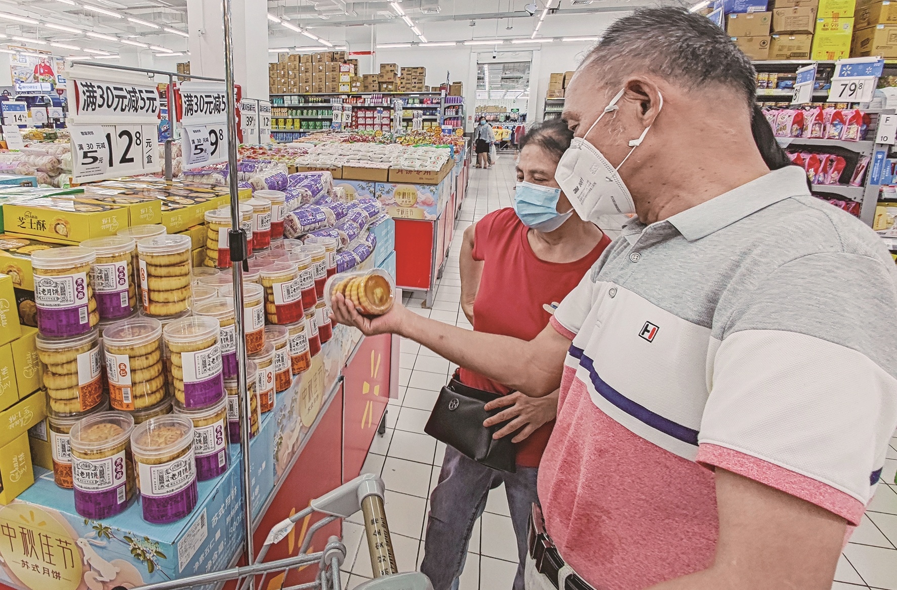 “这款月饼可以减糖30%,口味微甜。”在仟吉一家门店内,记者看到,店员正热情地向前来选购月饼的年轻人介绍减糖月饼的特点。