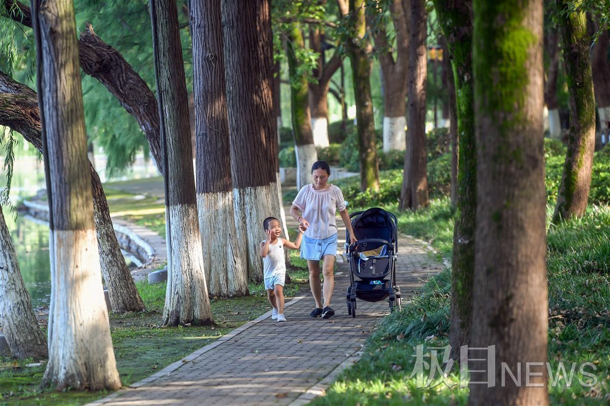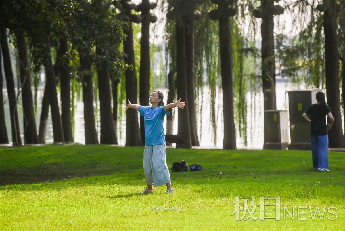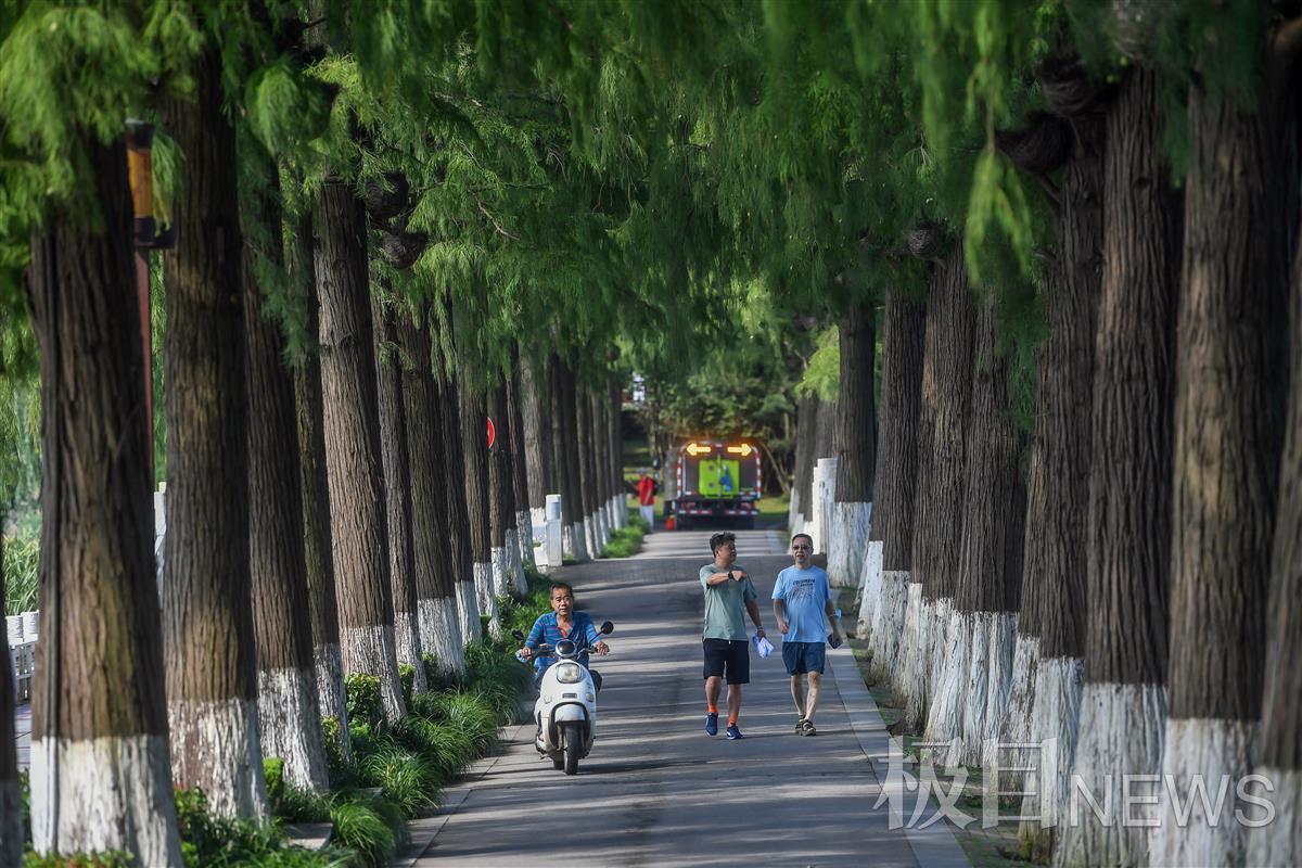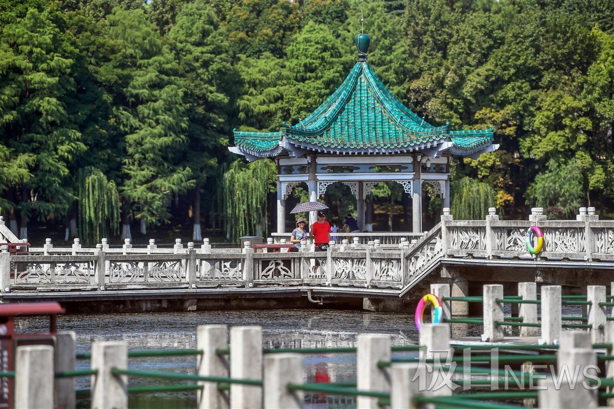 东湖风景区内,前来游园的市民都自觉保持安全距离有序游玩。