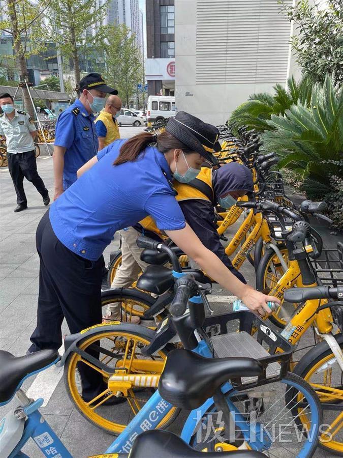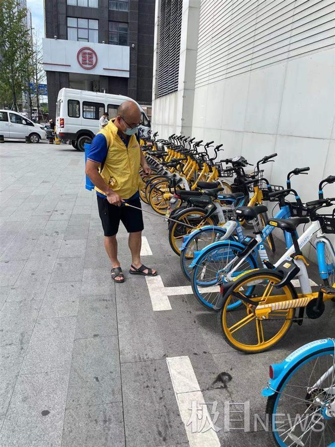 据悉,汉阳区城管执法局在联合共享单车企业开展消毒的同时,针对辖区内轨道交通沿线、商圈、交通枢纽等热点区域,及时督促企业储备和调运消杀物资,最大化保障重点区域的车辆消杀用品供给,做好集中消杀工作。