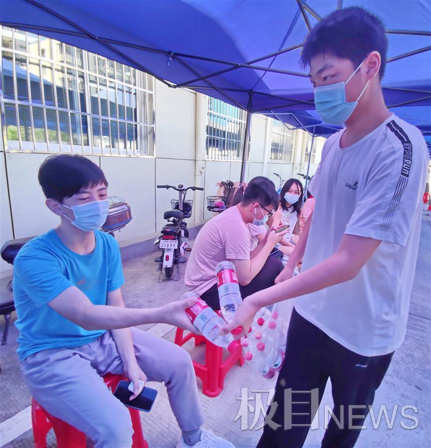 江汉区唐家墩街和社区卫生服务中心,为学生及陪同家长,免费提供降温矿泉水
