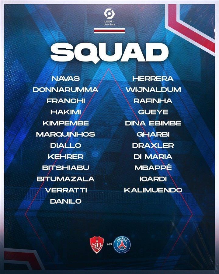 北京时间8月20日下午,巴黎圣日耳曼官方公布了法甲第3轮客场征战布雷斯特的大名单,名单显示,梅西、拉莫斯、内马尔将继续缺席比赛。