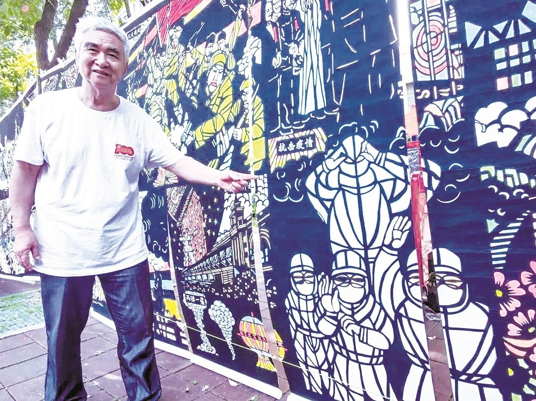 一手剪刀一手笔 古稀老人绘虹霓