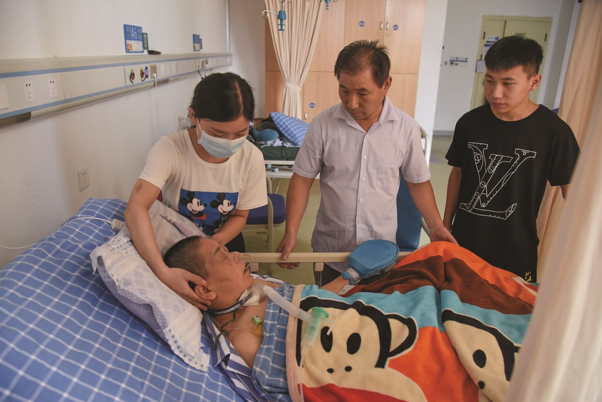 孙女士在ICU病房住了整整两个星期。每天下午,小丁和父亲通过ICU病房外的视频监控可以看到孙女士的状况。“妈妈看上去已经完全憔悴,身上插满管子,没有任何回应。”小丁说,看到病房里的妈妈,她心如刀绞,原本打算过段时间到武汉来看母亲,“现在唯一的心愿就是祈盼妈妈赶紧醒过来。”