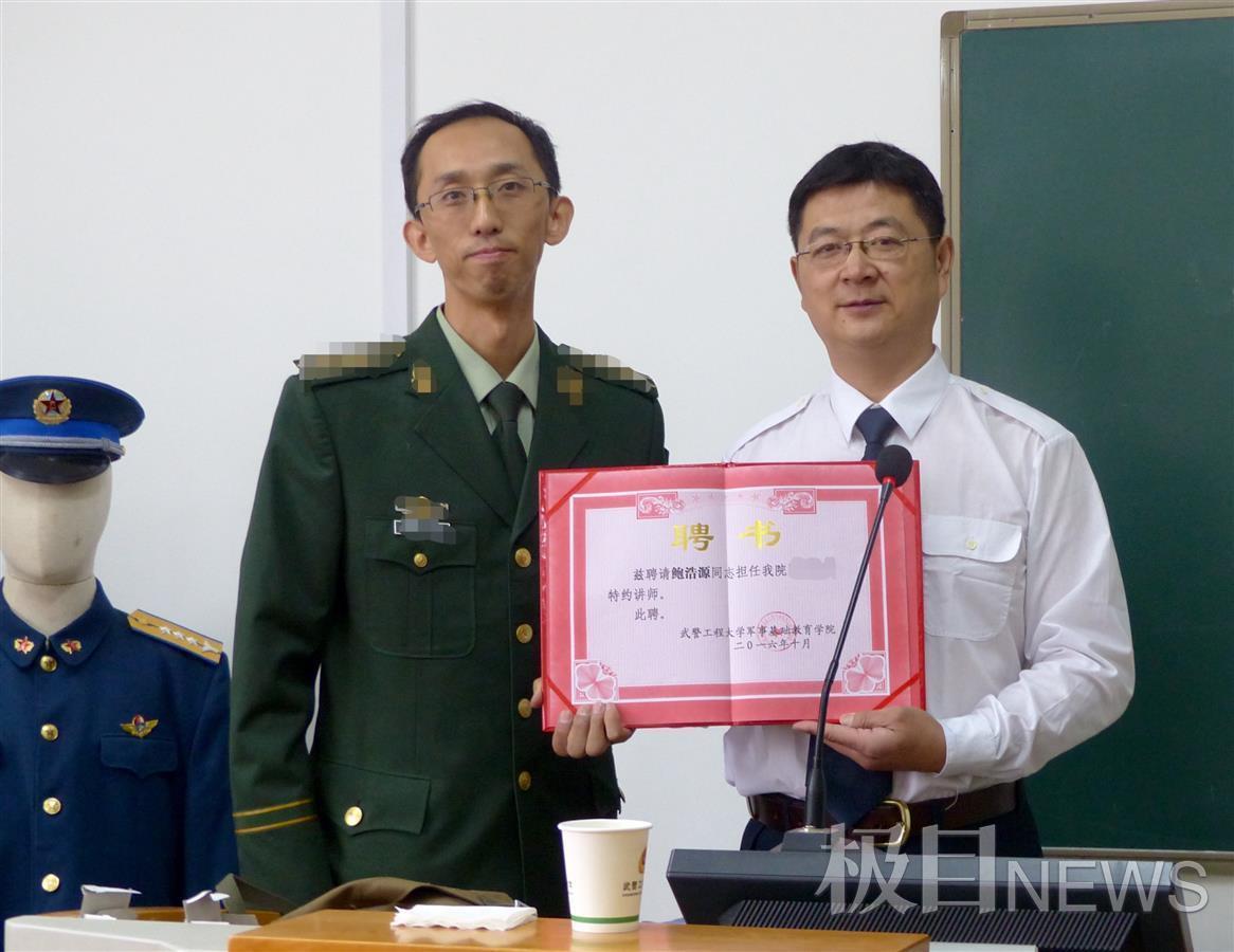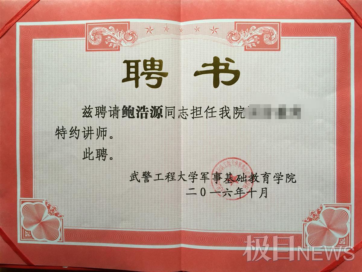 军品委员会成立后,从最初参观、到参展、再到主办自己的展会,他的收藏事业越做越好。2016年,鲍浩源被中国人民解放军陕西某预备役高炮师授予预备役上校军衔。同年10月,武警工程大学某学院聘请他成为国防教育特约讲师。
