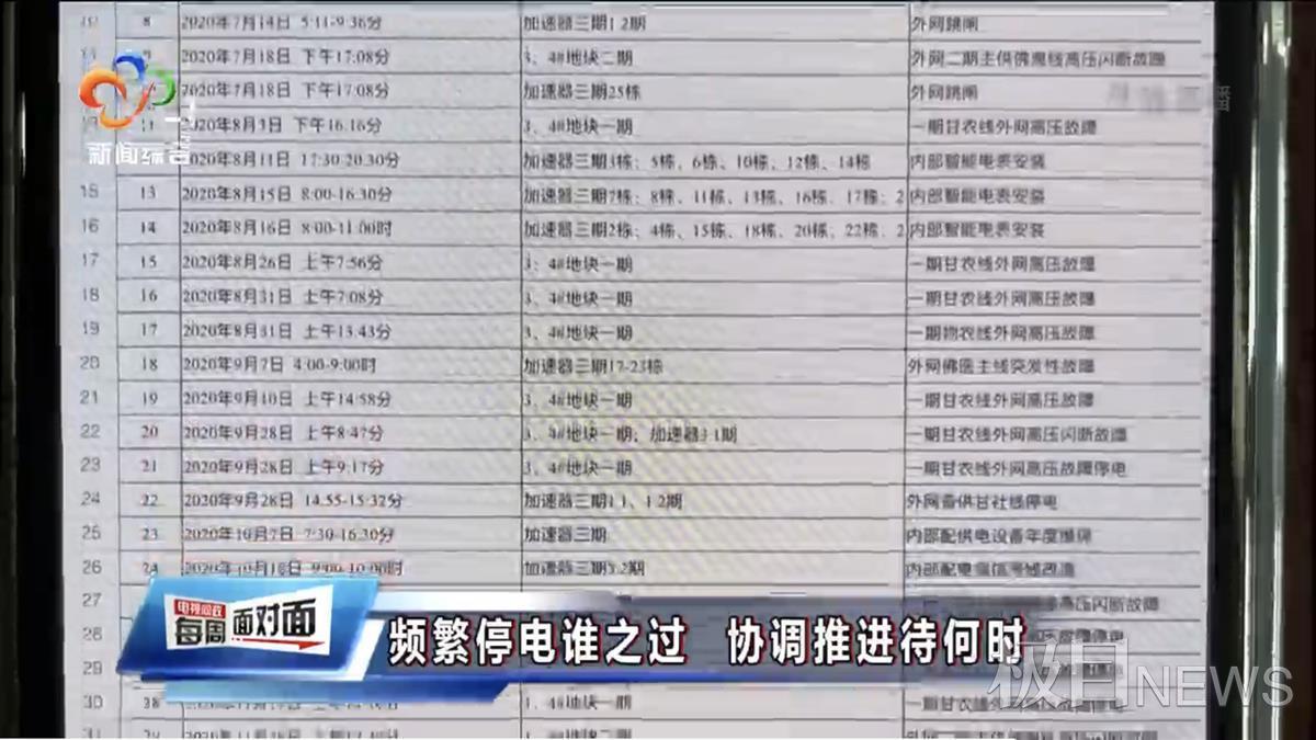 据了解,今年7月8日,在没有事先通知的情况下,园区从当晚10点至次日凌晨2点,停电长达4小时。巡查员查询了物业公司的记录,发现近一年左右,园区共停电40多次。