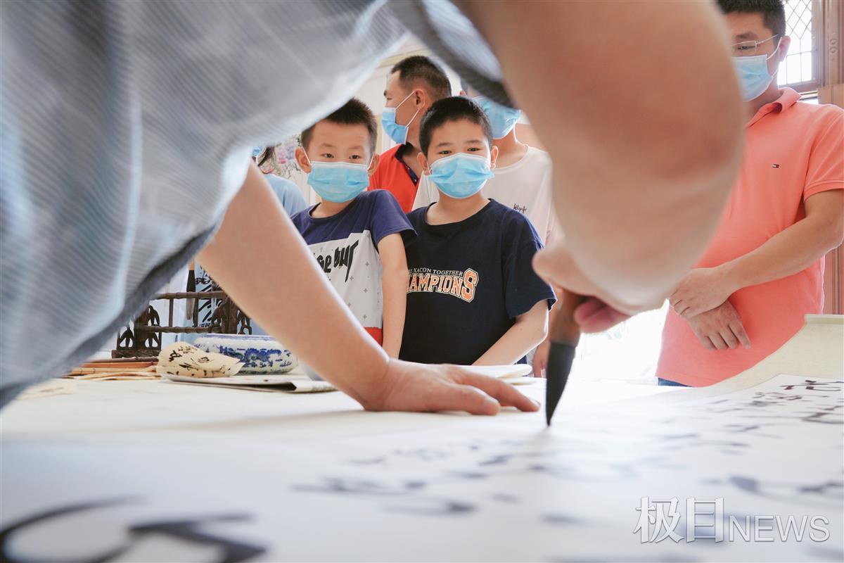 学生们认真学习书法家写字 叶东辉摄