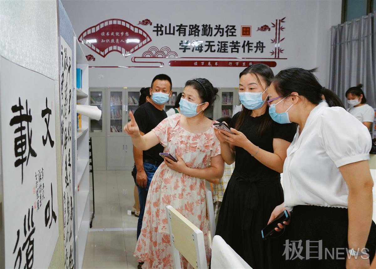 “我想要一幅‘坚毅果敢’送给我孙子”“我喜欢《春晓》的诗词,希望老师帮我写一幅”。初秋的汪集街安仁村湾荷稻清新,安仁村农家书屋里翰墨飘香,当天上午,只见书屋内一张张桌子整齐排开,书法家们挥毫泼墨,有行书、楷书、隶书和篆书,风格迥异,内容有习近平用典名句、儒家经典名人名句、古典诗句名句等。一幅幅饱含真情的书画作品被居民捧在手里,整个现场浓浓的书香味儿“扑面而来”。