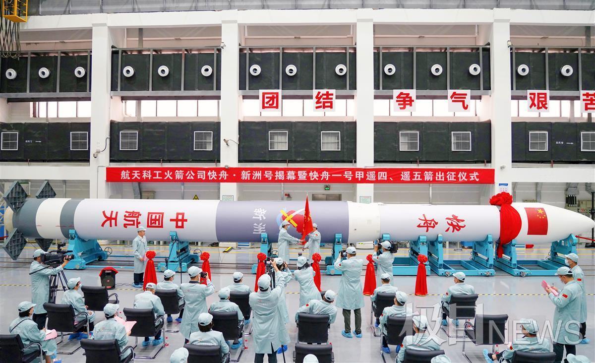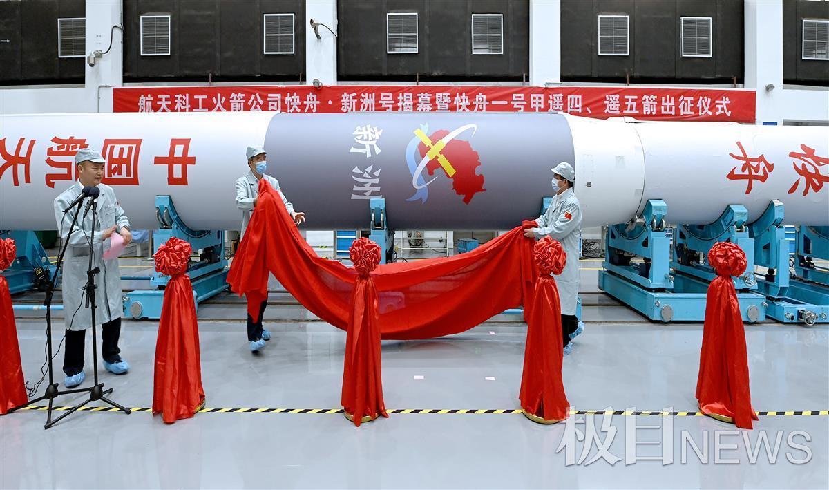 出征仪式上亮相的火箭共有两枚,分别为“快舟一号甲”遥四箭、遥五箭。其中,遥五箭命名“新洲”号,按计划“新洲”号火箭将于9月份择机发射。