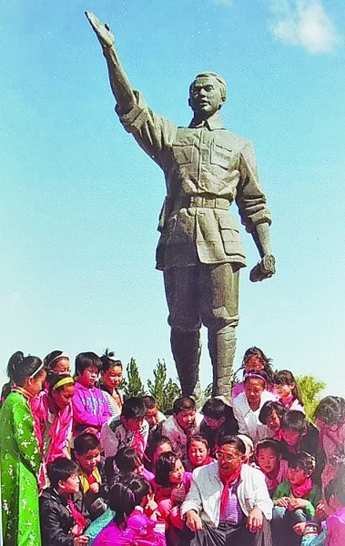 当地各族儿童在麦新烈士雕像前聆听麦新的故事 任凤屹摄/光明图片
