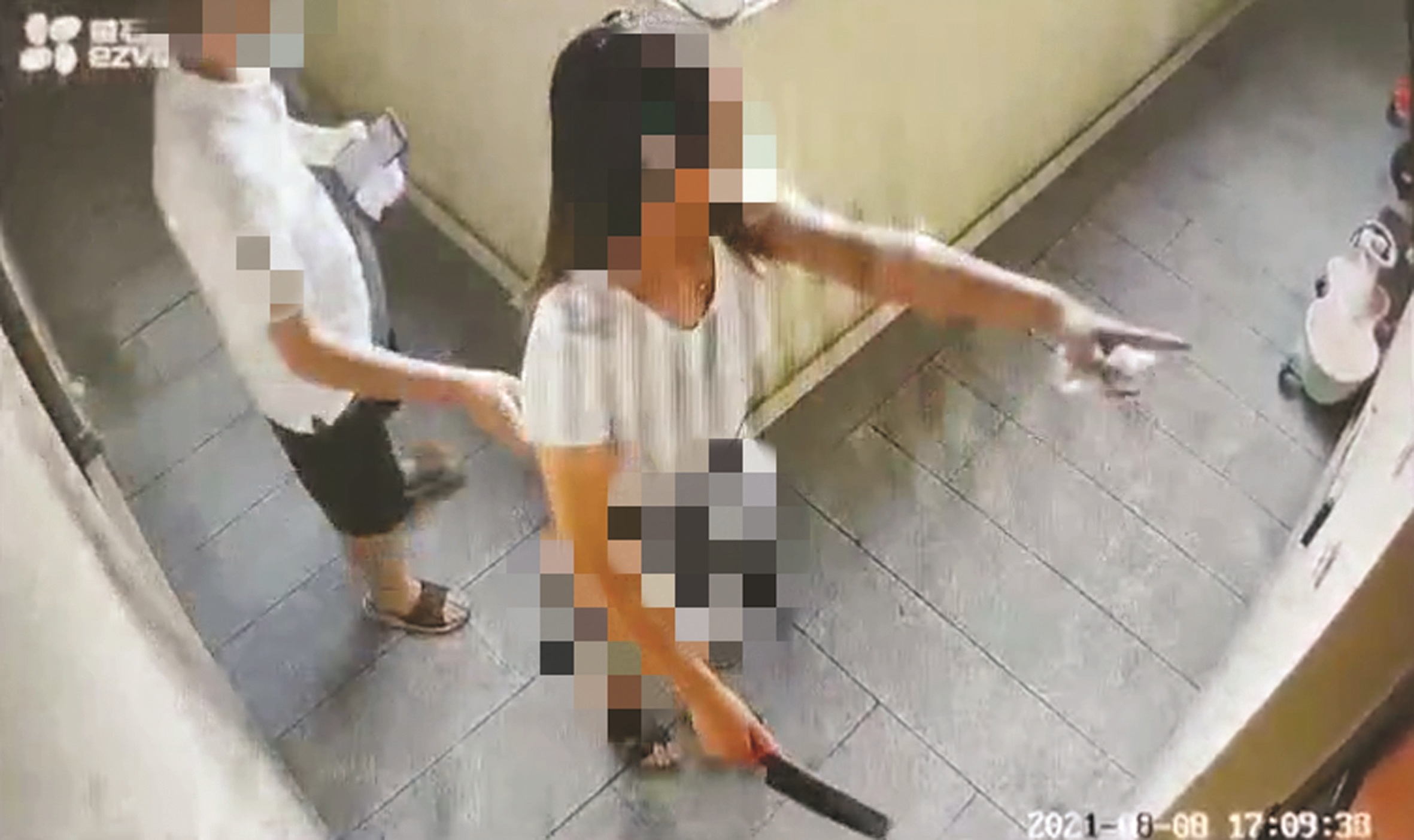 “当时,我听到类似砸门声,于是开门查看,才发现她手里拿着菜刀。”陈女士告诉记者,开门后对方的菜刀仍在挥动,她赶紧转身从屋内随手拿起一根棍子进行防卫,两人在家门口纠缠了一下,她便关上了门,随即报警。