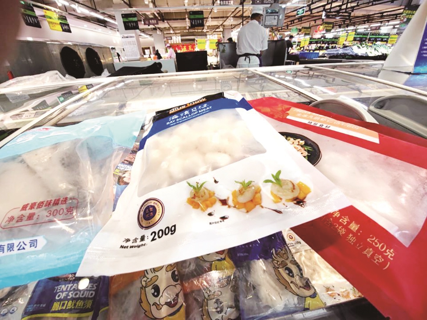 超市内售卖的冰冻虾仁