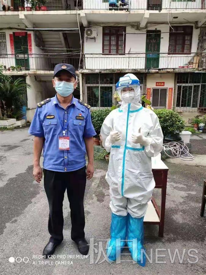 当日上午,江夏区第一人民医院(协和江南医院)神经外科护士程思涵接到医院通知,前往纸坊城区新北路社区参加防疫保障。一到现场,程思涵就在值守人员中发现了一个熟悉的身影。