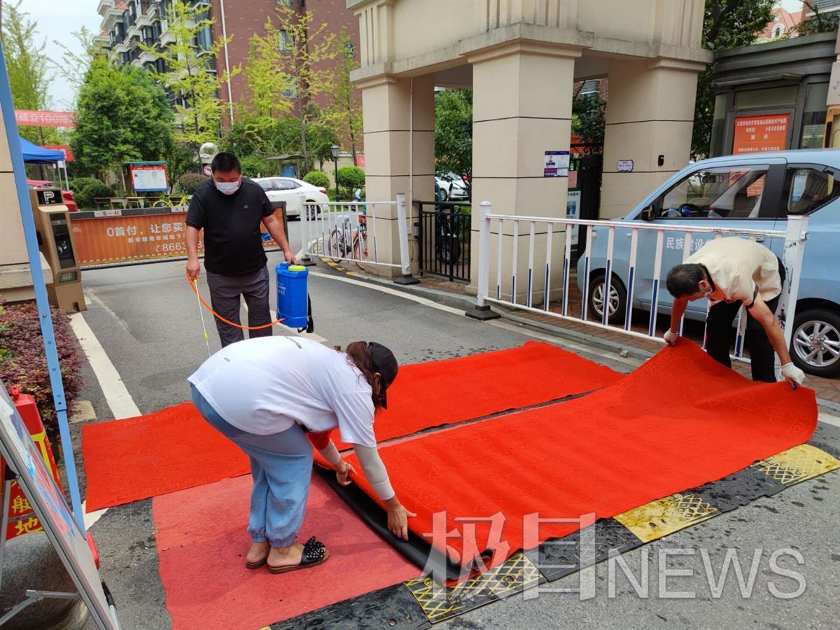 在现场,极目新闻记者看到,工作人员铺上了新的地毯,在地毯上洒上了消毒水,工作人员告诉记者,这是为了让汽车轮胎消毒“要保证不会有病毒再进入小区了”。在门口开车等待进入的李女士告诉记者,自己的孩子和父母在小区,很想念他们。马上开学了,要接孩子回汉口上学,这个解封真的很及时。