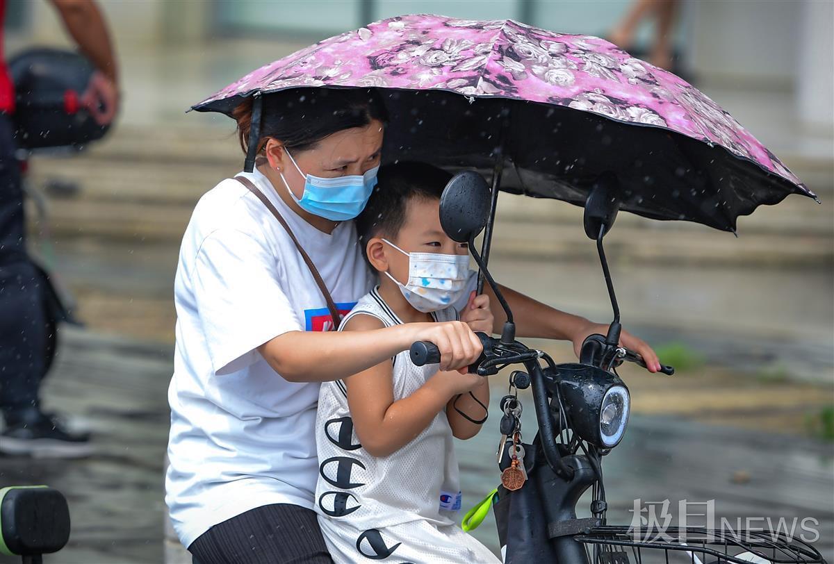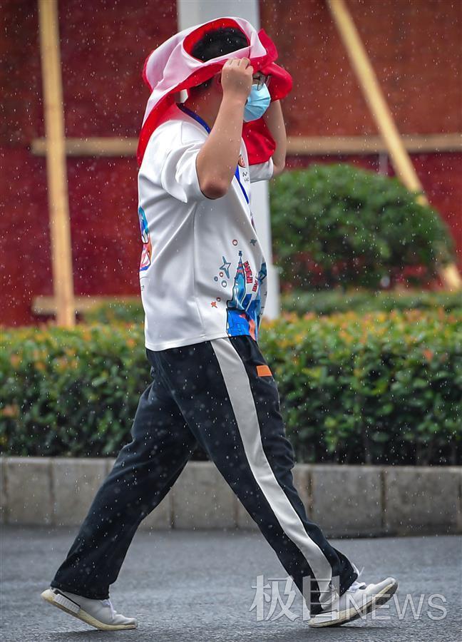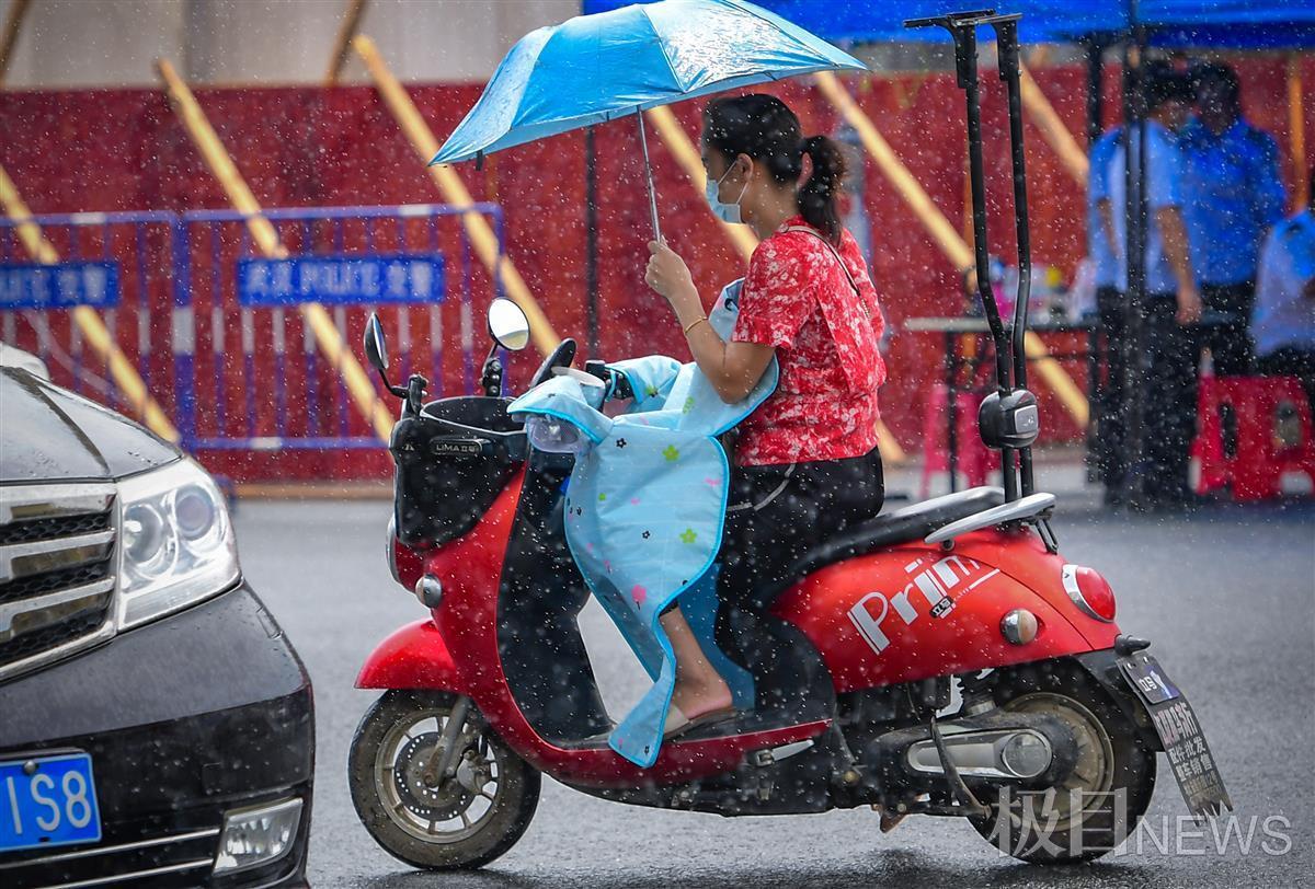 8月22日下午2时左右,记者在武汉市江夏区文化大道看到,烈日当空的天空,突然乌云密布,下起了滂沱大雨。约20分钟时间,大雨停止,太阳探出了头,这太阳还没出来10分钟,接着乌云卷土重来,暴雨涮涮直下,路上行人或纷纷就近躲雨,或在马路上急忙撑开雨伞、穿上雨衣,应对这突如其来的恶劣天气。两场滂沱大雨前后不超过一个小时,雨后乌云散开,又是艳阳高照。