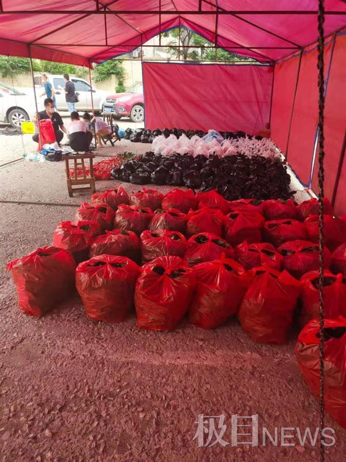 漳河镇疫情防控指挥部市场保供组负责人告诉极目新闻记者,目前漳河镇7.5万公斤葡萄,已销售近4万公斤,1.5万公斤黄桃已经销售一空,蔬菜每天销售超过5000公斤,原来2万公斤存量的丑瓜,现在只剩下7500公斤,漳河农产品滞销问题得到了较好的解决。