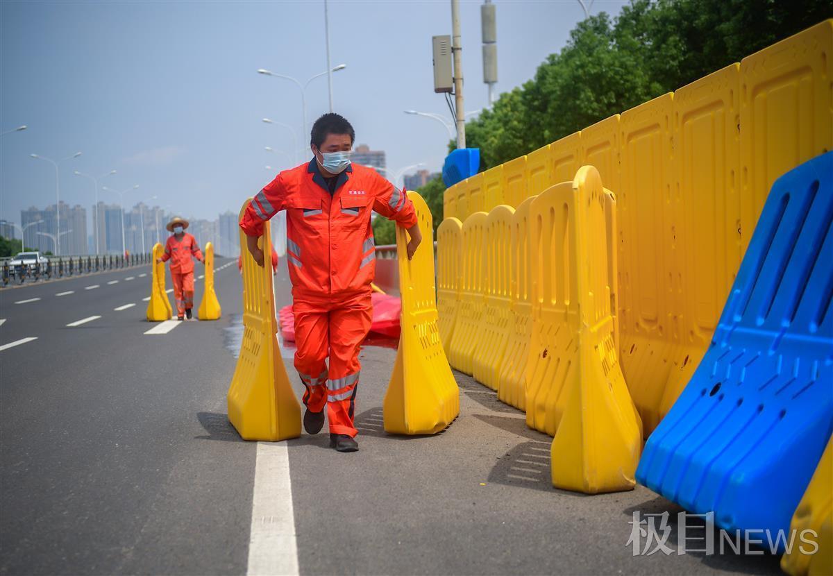上午11点半,记者在江夏区汤逊湖桥卡口看到,已有车辆在排队等待,身着工作服的工人师傅们忙碌着,依次撤除道路中的塑料围挡,10多名交通警察在路中冒着炎炎烈日站好最后一班岗,路旁有众多市民前来见证这一时刻,中午12点,武汉市江夏区汤逊湖桥封闭卡口正式撤除,车辆有序通行。