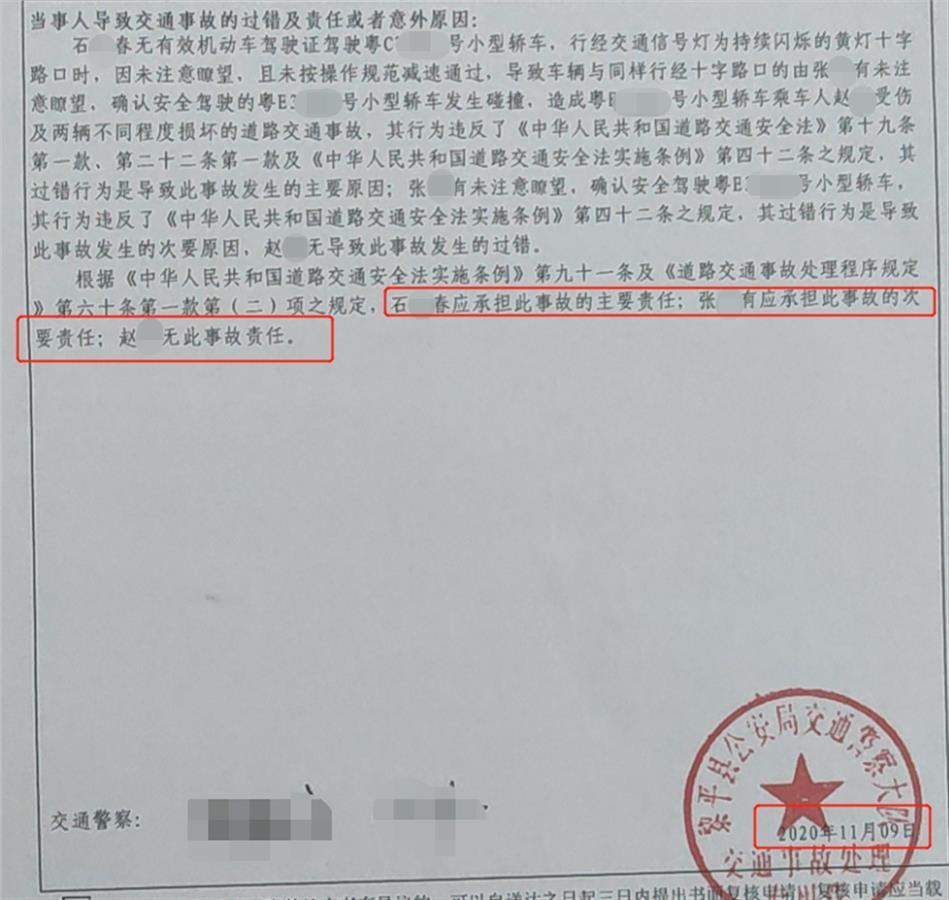 2020年11月9日事故认定书下半页(来源:赵先生提供)
