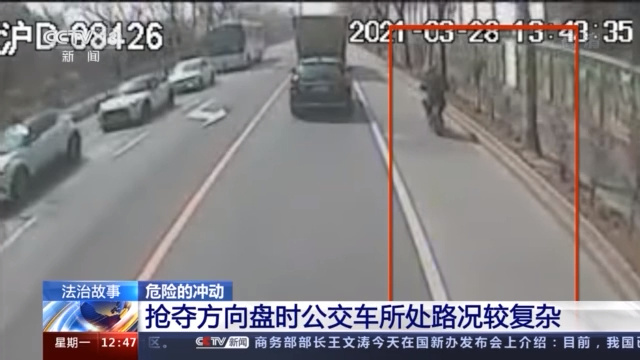 公共场所视频显示,当天13时43分左右,原本坐在座位上的顾某突然起身,走到了驾驶员的位置,并猛然用手拉拽方向盘,驾驶员连忙将车停下,并从怀中掏出手机试图打电话求助。与此同时,坐在前排及后排位置的几名乘客也起身围上来制止顾某的行为,将他拉向车门口的位置,远离驾驶员。但顾某却挣脱出来,再次贴近驾驶员,还用拳头反复击打他的头部。