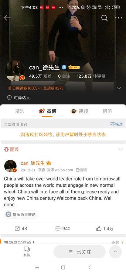 徐勤根微博已处于禁言状态 (来源:徐勤根微博截图)
