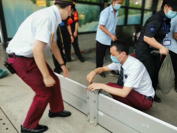 23日白天,地铁范湖站进行应对暴雨天气演练。通讯员陈芳 摄