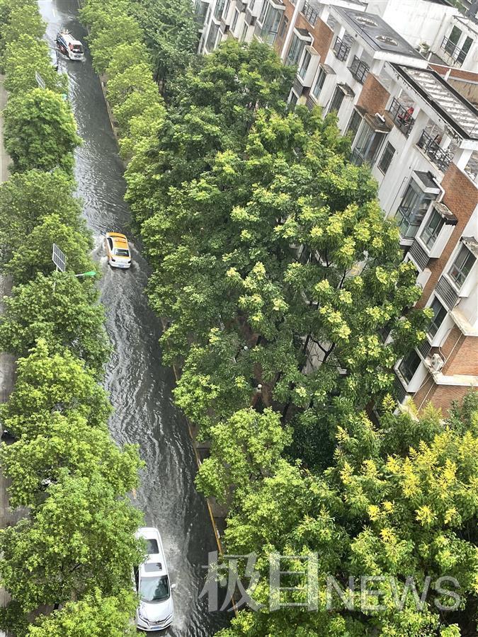 暴雨强势推进,上午9时至10时,短短1个小时,洪山区民光路已出现10厘米深的积水,下水道的水倒灌上来,成了一条“黑河”。“只要雨水稍微急一点,这里就会积水很严重,经常被淹。”临街一商户介绍,以前经常过膝盖,今天还算好一点。