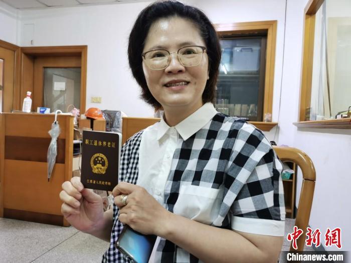 古祝瑛展示自己的《职工退休养老证》。 钟升 摄