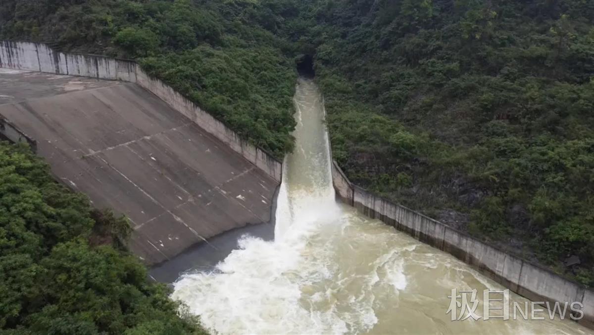 石门集水库是一座以防洪、灌溉、供水为主,兼有发电、养殖,综合效益的大二型水库,水库承雨面积252.3平方公里,汛限水位195米,总库容1.5403亿立方米。极目新闻记者在现场看到,水库坝面通道已经封闭,大坝正在开闸泄洪。