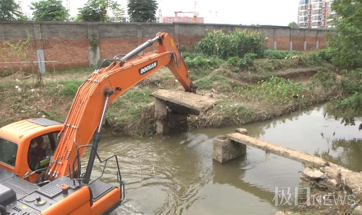 在城北防洪渠城南段,该县水利局、城管执法局和蛮河沿岸镇村60多名工作人员正在渠道沿线进行险情排查,2台大型机械设备分别对渠道内影响泄洪流量的6座漫水桥和2处节制闸进行拆除。