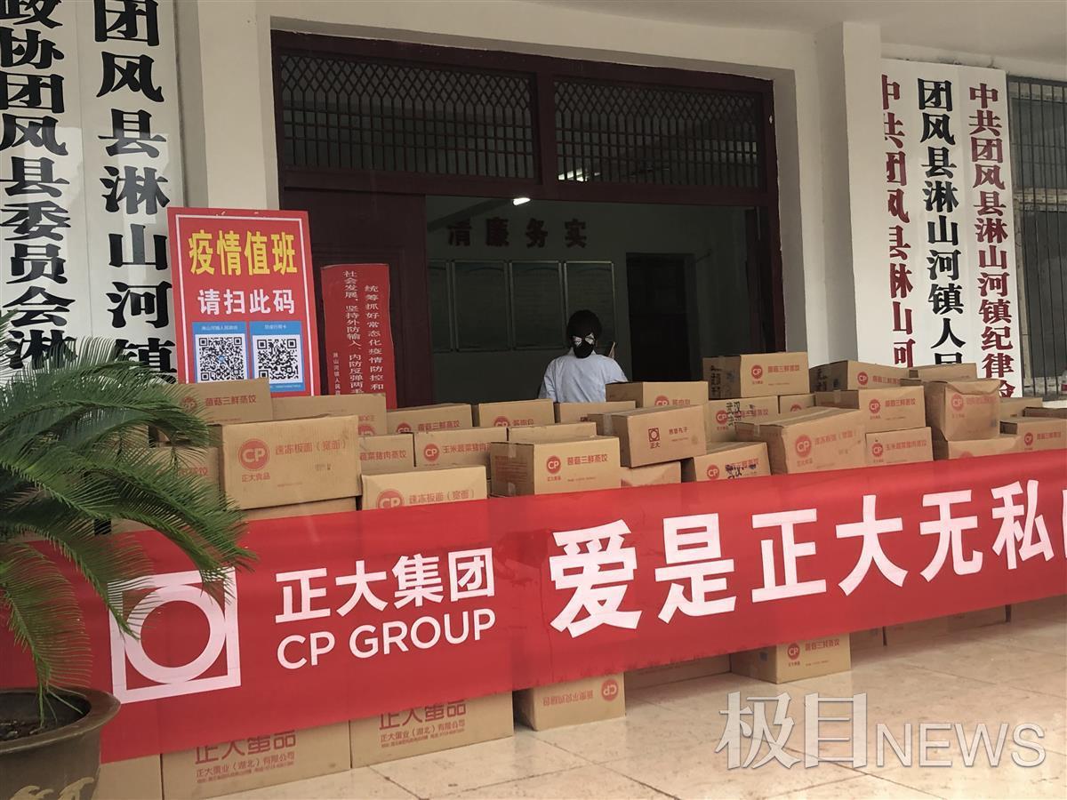 8月21日,正大蛋业湖北公司负责人陈春光率队来到淋山河镇,将装有蒸饺、面条、包子、鸡蛋等食品的数十只纸箱整整齐齐地摆放在淋山河镇政府门前。