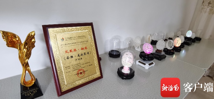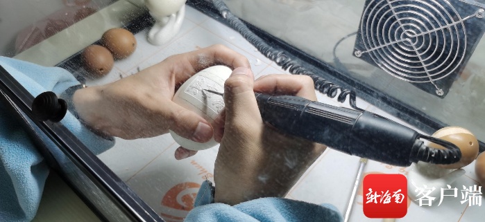 谈及未来,这位年轻人眼里闪闪熠熠光芒,许健强有一个大大的梦想,“等我财务自由了,我想开个蛋雕工作室,可以展览作品、也可以亲子DIY,让大家在艺术中找到平静与专注,我会将蛋雕进行创新改造,雕刻更多充满三亚元素、海南元素的蛋雕,用自己的手艺为城市做宣传。”