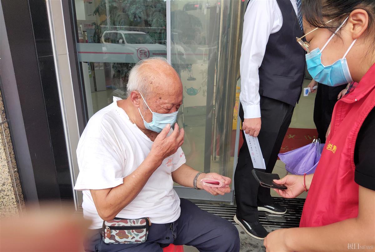 安抚好老人的情绪后,汪丽向银行工作人员了解情况后,征得同意,拿着老人的存折,凭自己的手机绿码进入银行取号、拿号等待服务,取完钱后汪丽拿着老人的退休工资,当着银行工作人员的面,交给江爹爹并让老人当面点清。江爹爹拿着退休金连声道谢。