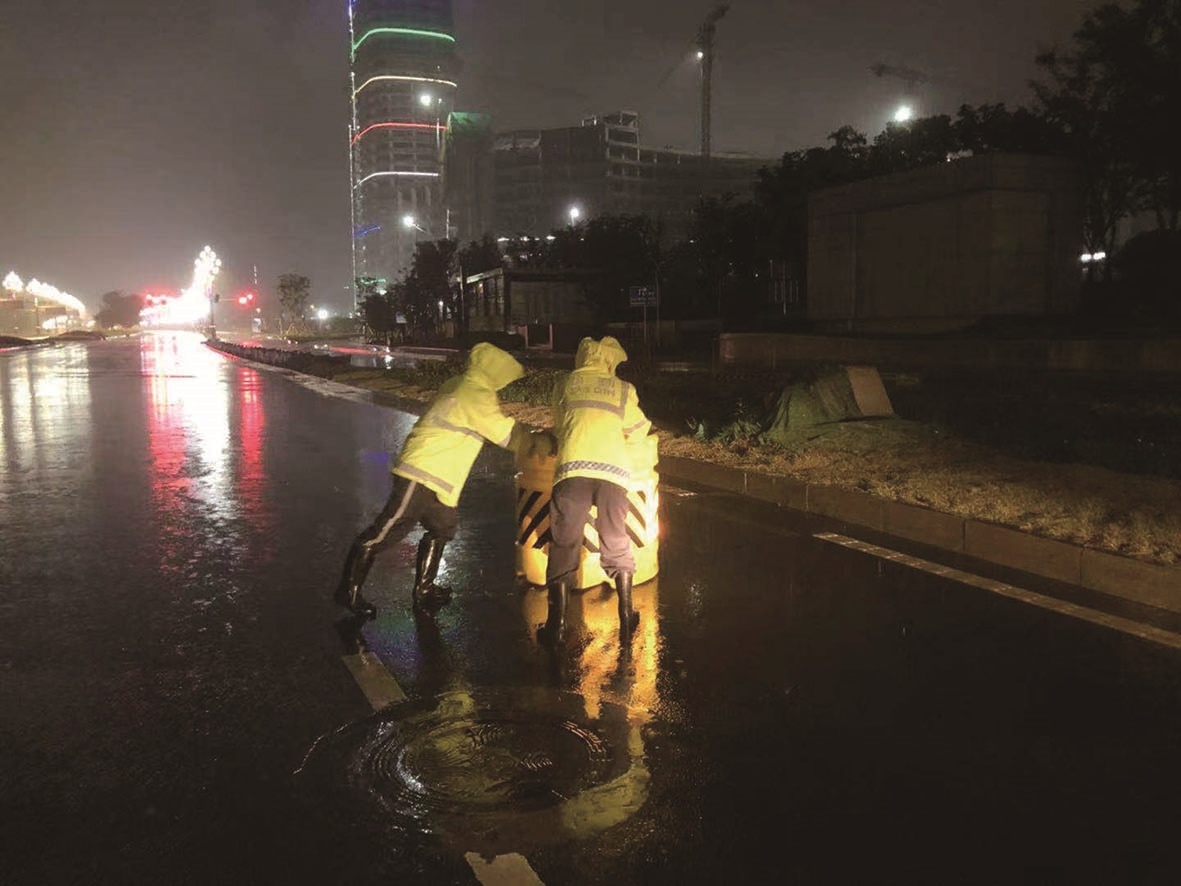 24日凌晨,武昌区交通大队迅速启动应急预案,副大队长熊志军带队第一时间赶到积水路段,现场调度指挥,设置警示标志,疏导车辆,处置拖移故障车辆,分流疏导交通等,直至4时30分,积水消退,道路恢复正常,帮助群众拖移车辆20余台。三中队副中队长张伟哲巡逻至梨园广场发现树枝倒地影响道路通行,徒手将树枝拖移。东湖高新区部分路段出现积水,民警第一时间赶到现场后,用身体对积水深度进行检测,以“人形水位线”引导驾驶员安全通过积水区,水退后对路面进行清理。