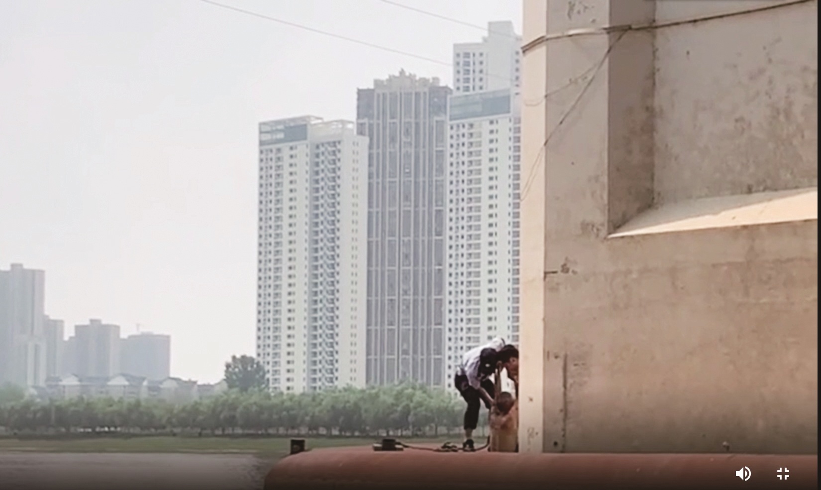 9时58分,武汉市公安局水上分局巡防检查站接到报警,立刻调度正在附近水域巡逻的109艇前往现场救援,民警李博、辅警董龙迅速赶到现场。据目击者描述,民警、辅警不顾自身安危,奋力爬上光滑的防撞墩,仔细寻找,最后在防撞墩底部狭小的缝隙里,发现了失踪老人。民警李博、辅警董龙告诉记者,当时,老人两手艰难地撑着两侧墩壁,身体在江水中飘荡,身上有多处擦伤,体力已明显不支。