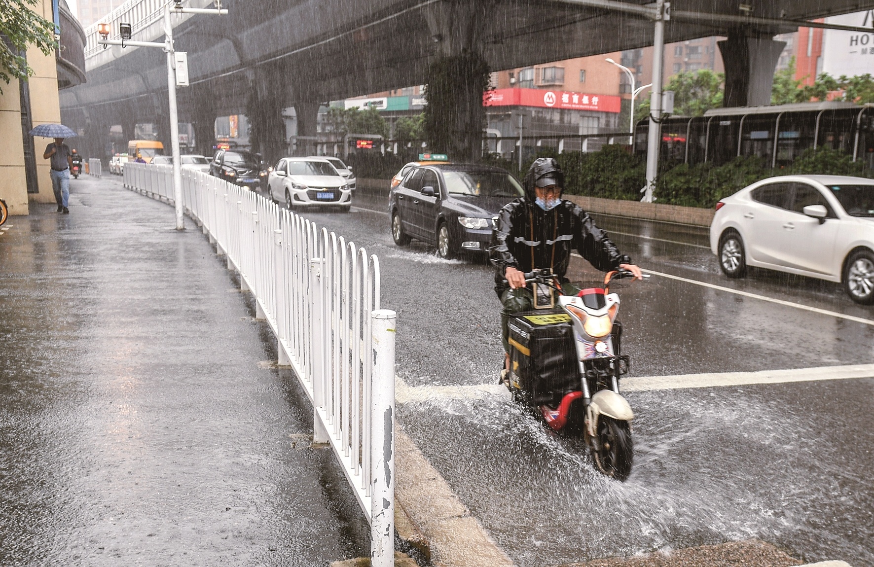 昨日暴雨武汉城区道路积水不深 楚天都市报极目新闻记者李辉摄