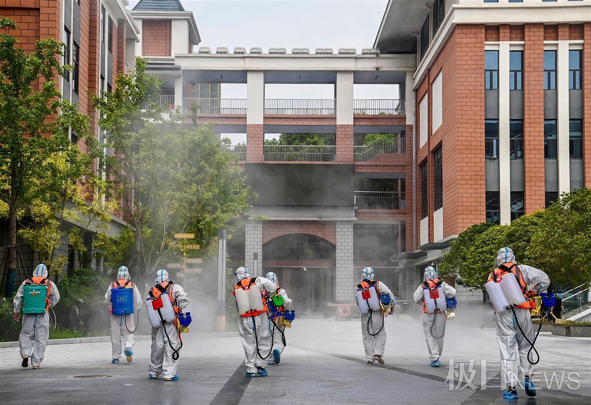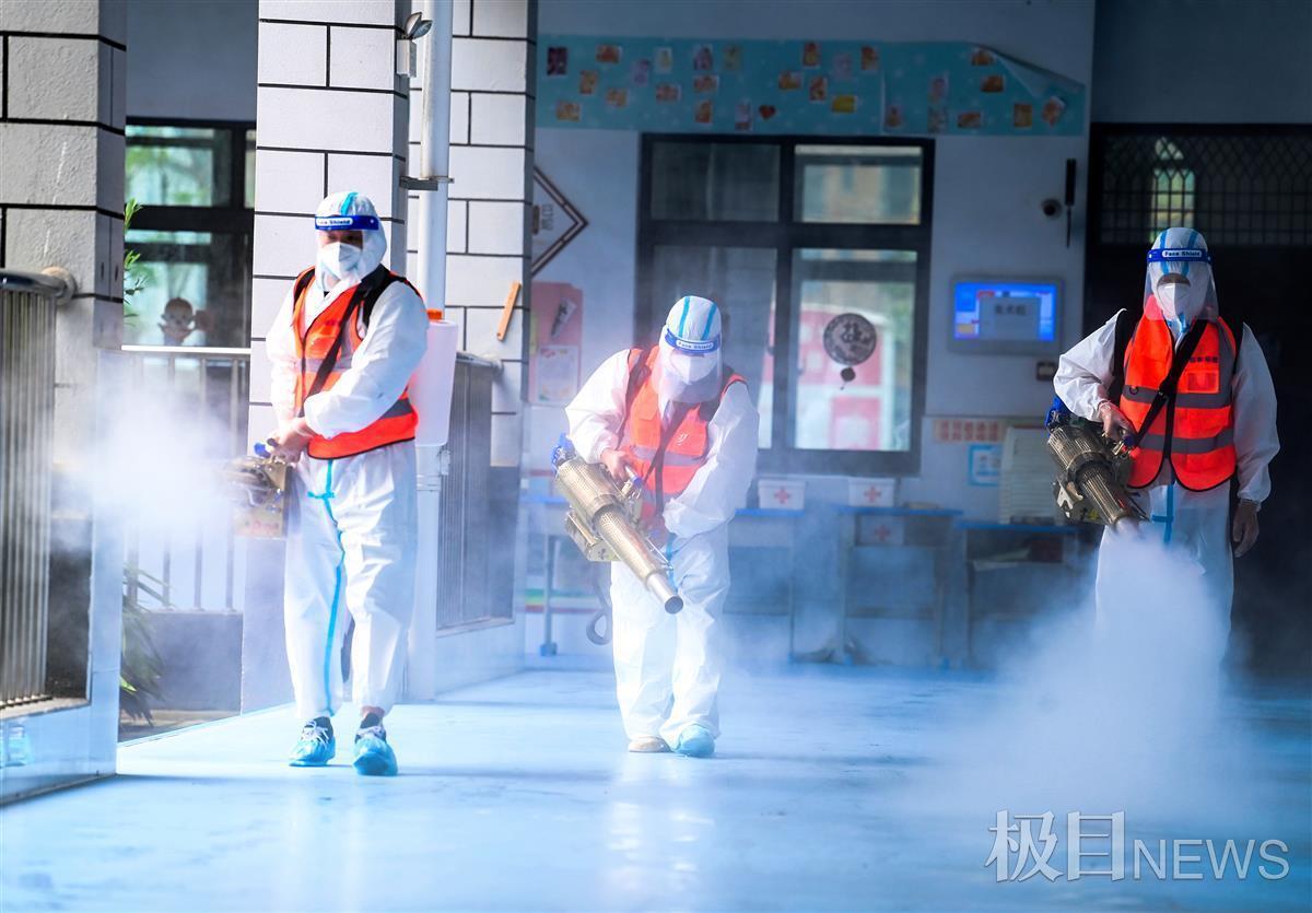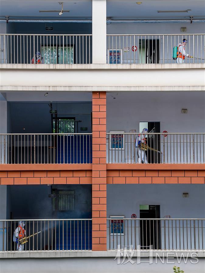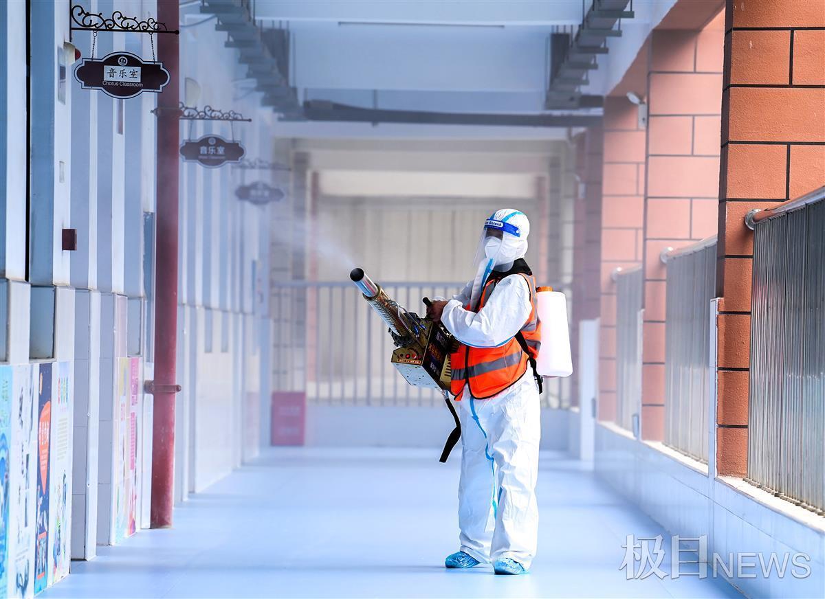 为了给即将返校的学生营造卫生整洁、安全有序的校园环境,8月25日,武汉市光谷第十二小学邀请专业人员,对校园内学生活动场所及教室内外进行了彻底消毒清理。