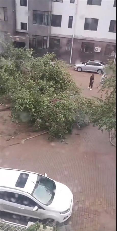 当地居民贺先生介绍,当时他在家没看到龙卷风,事后他到丽景国际小区看过,该小区有两栋楼的居民窗户受损严重,有的玻璃破损,有的窗户直接被吹掉到一楼,还看到很多绿化树木直接连根拨起或者折断。