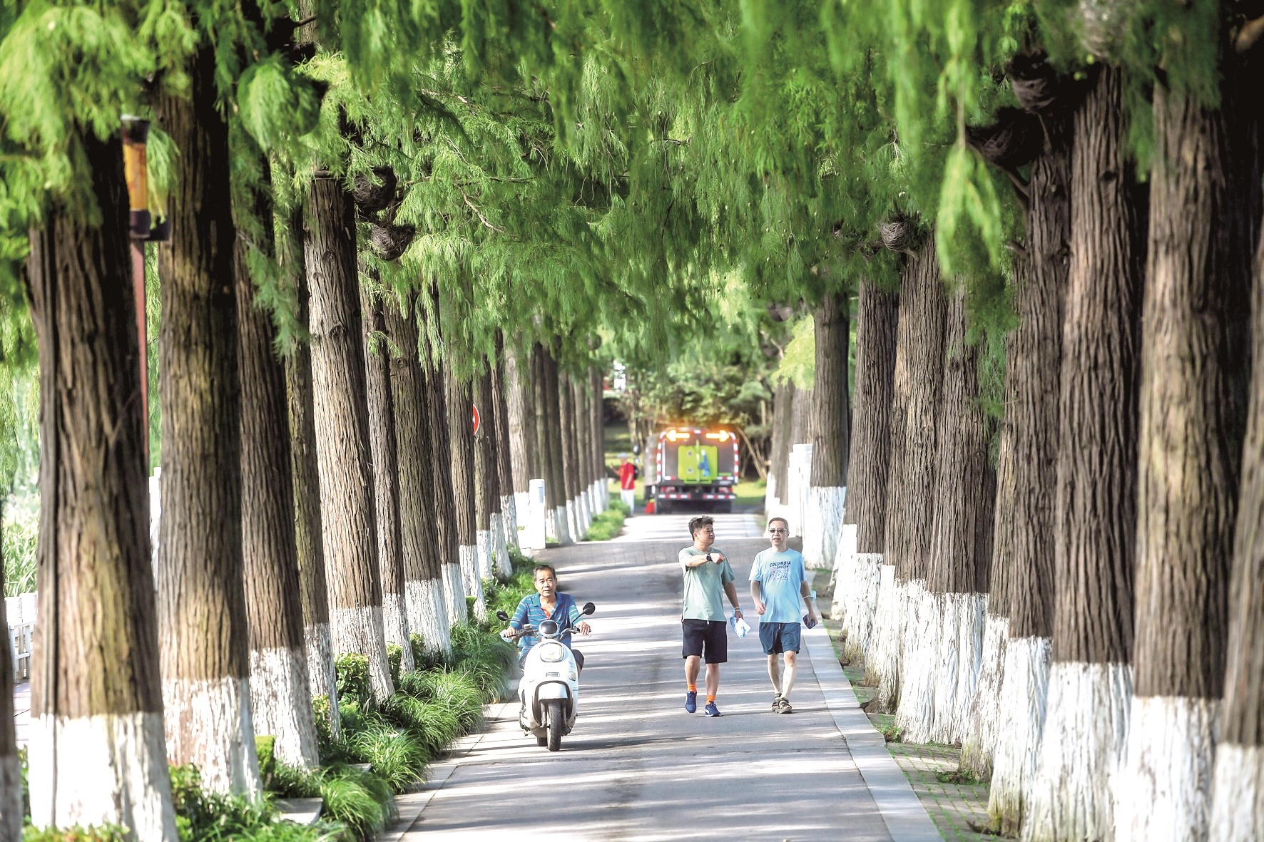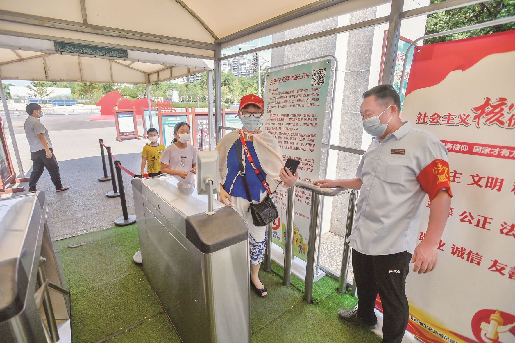 扫描健康码、行程码,测量体温、做好信息登记后,记者顺利进入东湖绿道。散步骑行的游客三三两两,不时传出的欢声笑语。