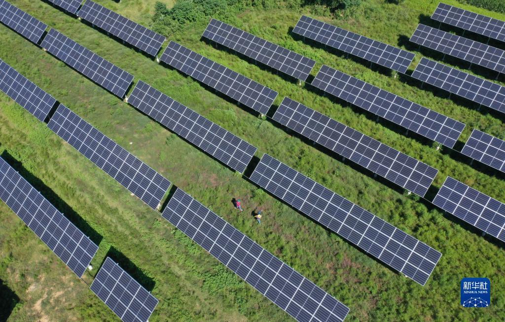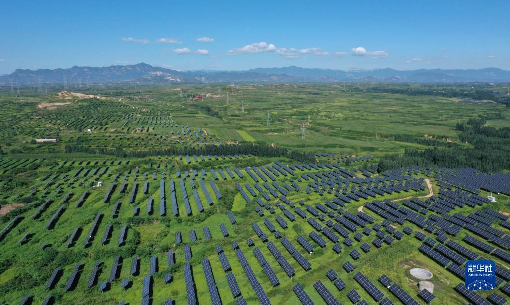 这是8月25日拍摄的内丘县五郭店乡中田庄村“农光互补”光伏发电项目(无人机照片)。