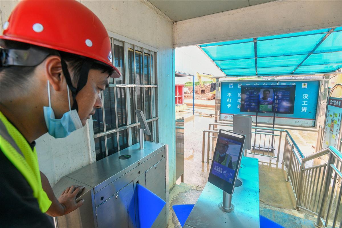8月25日,记者来到江夏区民族建设集团项目工地,工人正在“刷脸”通过疫情防控智能设备进入工地,大屏上个人健康信息一目了然,核验效果高效又便捷。