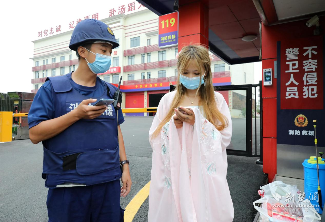 荆楚网(湖北日报网)讯(通讯员 朱燕林 刘璇)8月26日,湖北省咸宁市咸安区消防救援大队桂乡大道消防站上演了一段暖心故事。16时58分,在桂乡大道消防站的岗亭值班室门口两名汉服小姐姐匆匆赶来,送上西瓜、苹果、荔枝等水果和养乐多饮料,正当她们准备转身离开时,被消防员挽留了下来,带她们参观了消防站。她们表示,“消防员的工作很辛苦、很伟大、也很危险,我们一直都很热爱消防,在我们心里,你们就是英雄!”