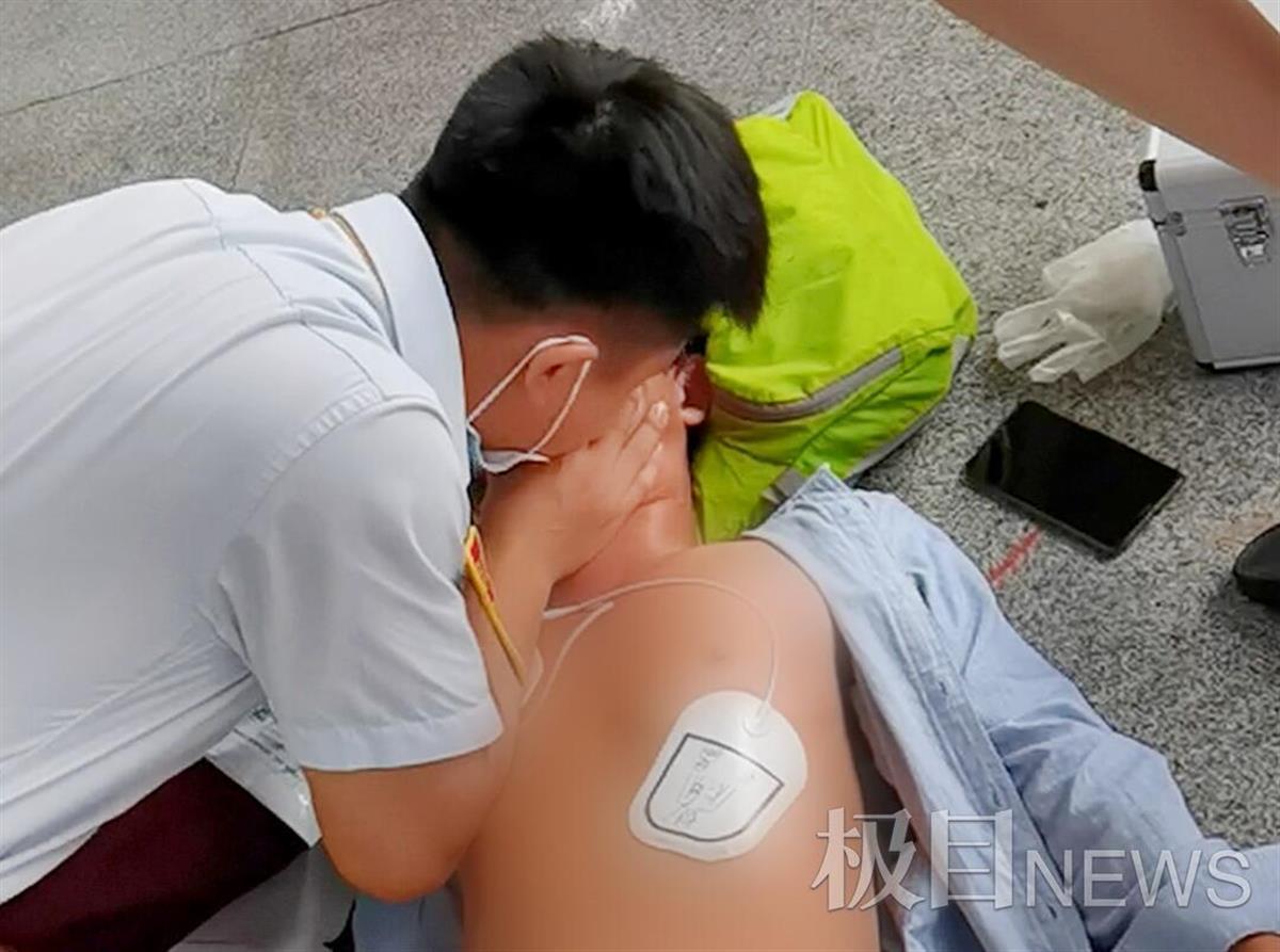 “可以使用车站AED!”120电话那头传来接线员的提示。根据120接线员的提示,段媛媛将晕倒乘客平放,头部稍稍抬起。与此同时,硚口路站值班站长李阳带领多名工作人员和驻站民警赶到现场:将发病乘客扶好躺平,利用背包将头部垫起,解开上衣。站内的AED取来后,李阳和工作人员罗随樊相互配合,打开设备,按照语音提示交替进行胸外按压和人工呼吸,经过三轮心肺复苏操作后,乘客发出轻微的咳嗽声。发病乘客苏醒,现场所有人员松了一口气。