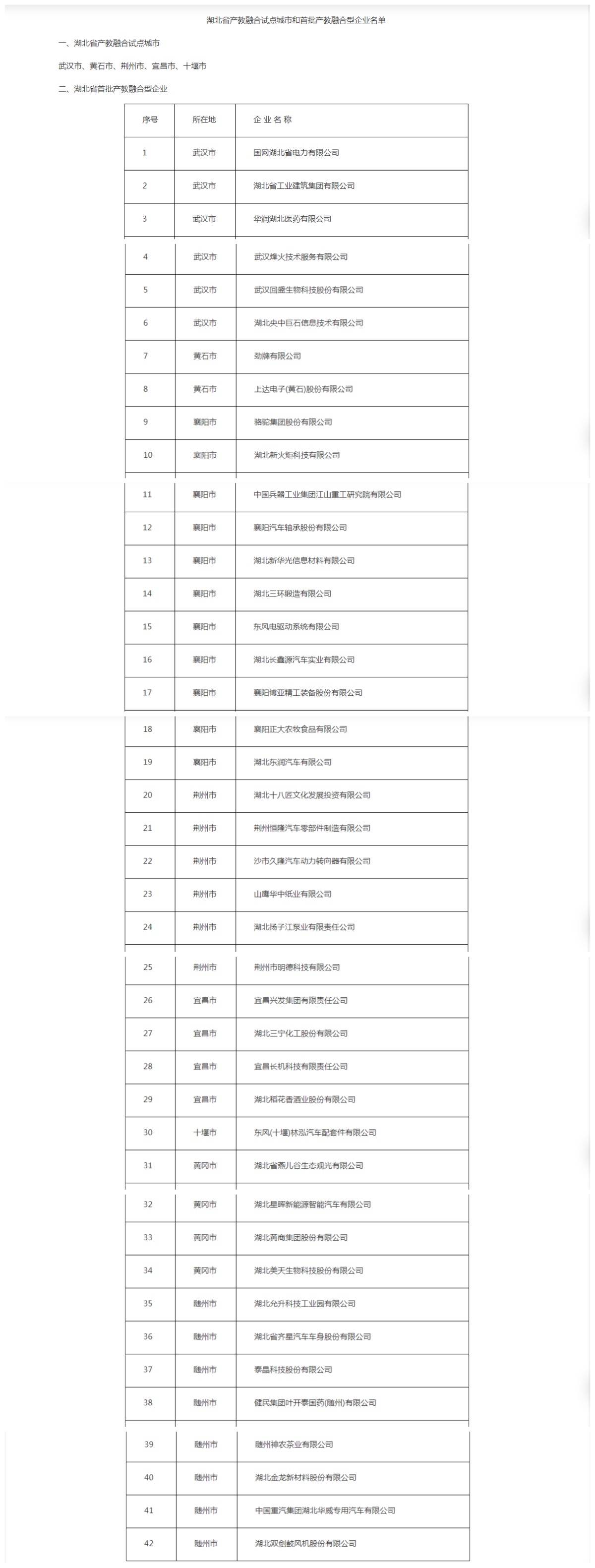 湖北省发改委、省教育厅等8部门近日发布通知,武汉市、黄石市、荆州市、宜昌市、十堰市等5市被认定为省产教融合试点城市,国网湖北省电力有限公司、湖北省工业建筑集团有限公司等42家公司被认定为首批产教融合型企业。