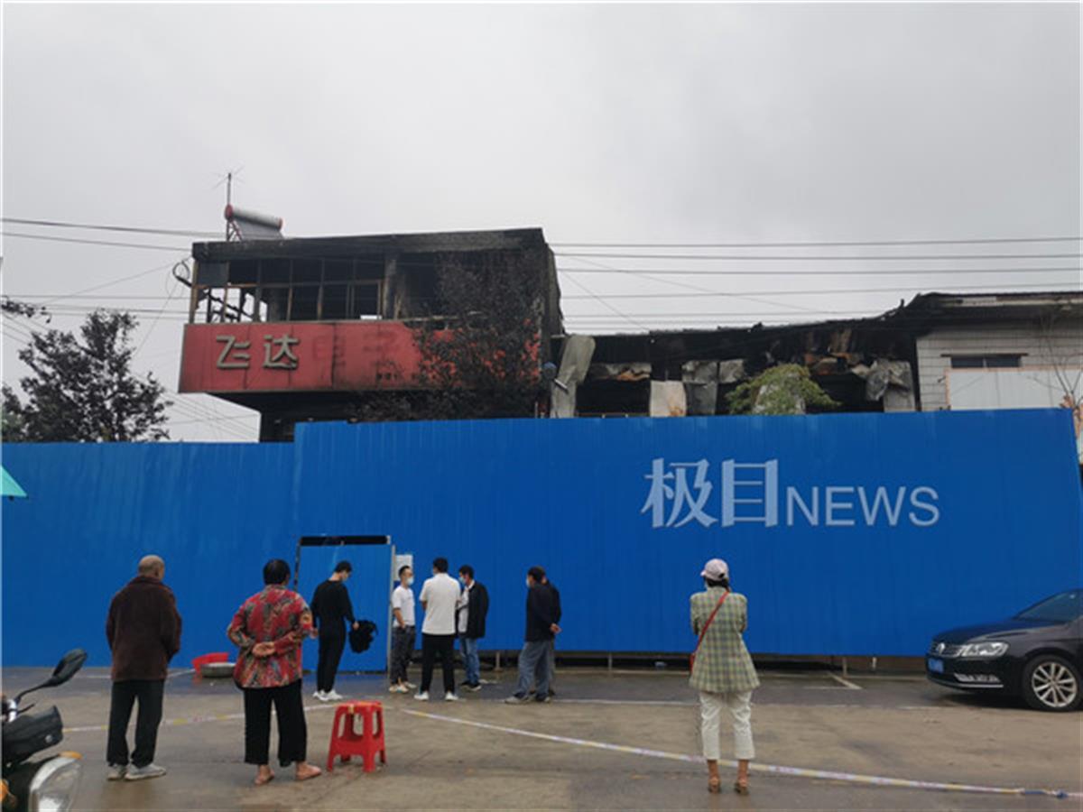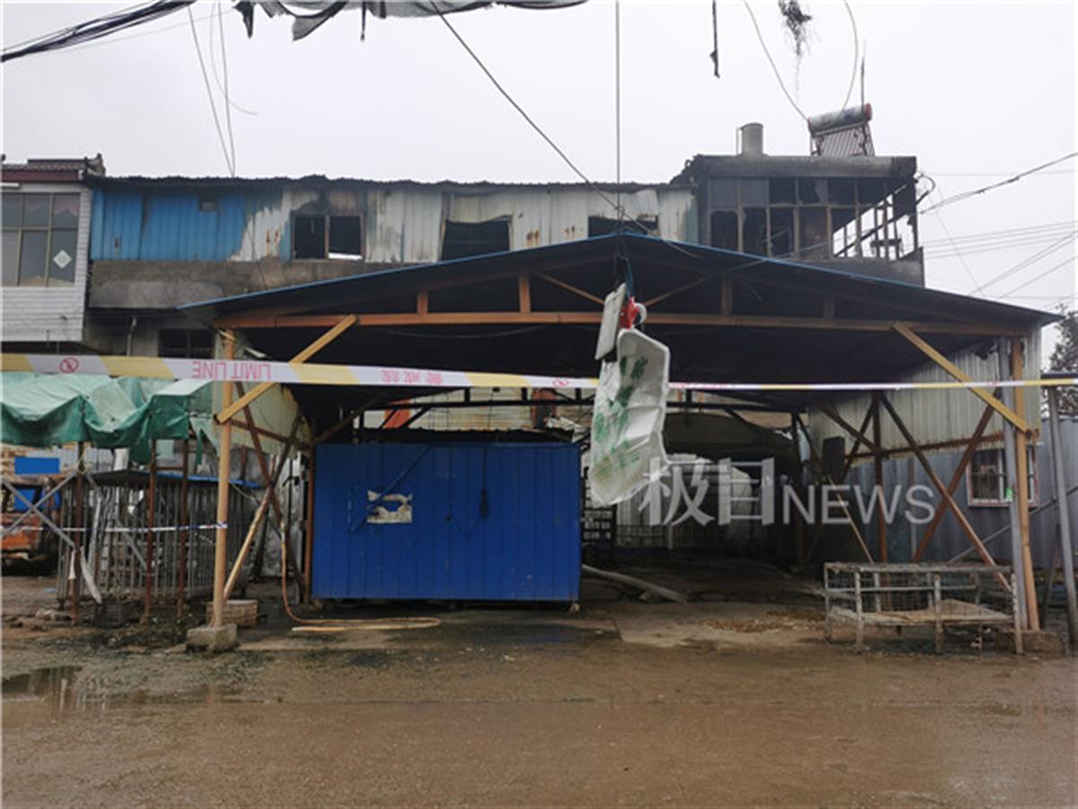 萧县杨楼镇黄河路的尽头,杨军的家电维修店外观几乎面目全非。2层的平房已被烟熏得黢黑,破碎的窗户和店牌上仅剩的“飞达”暗示着一天前发生的不幸。