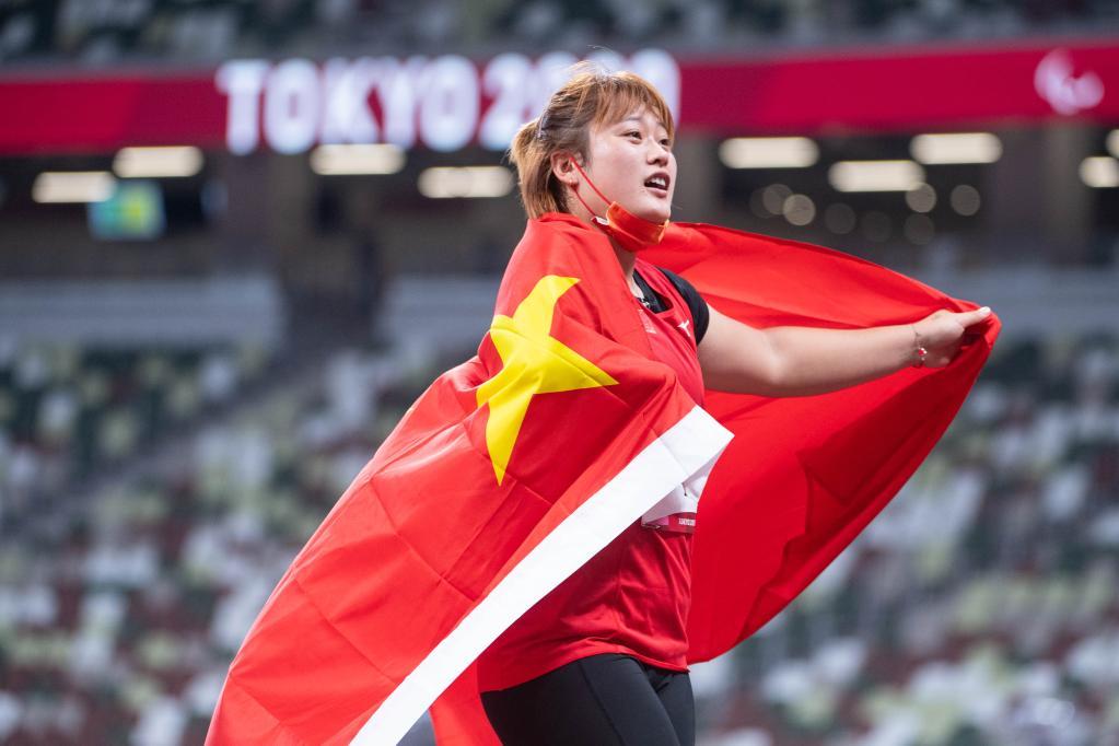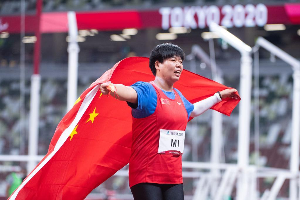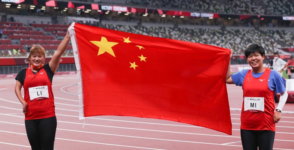 当日,在东京残奥会田径女子铅球F37级决赛中,中国选手米娜和李英粒分获银牌和铜牌。
