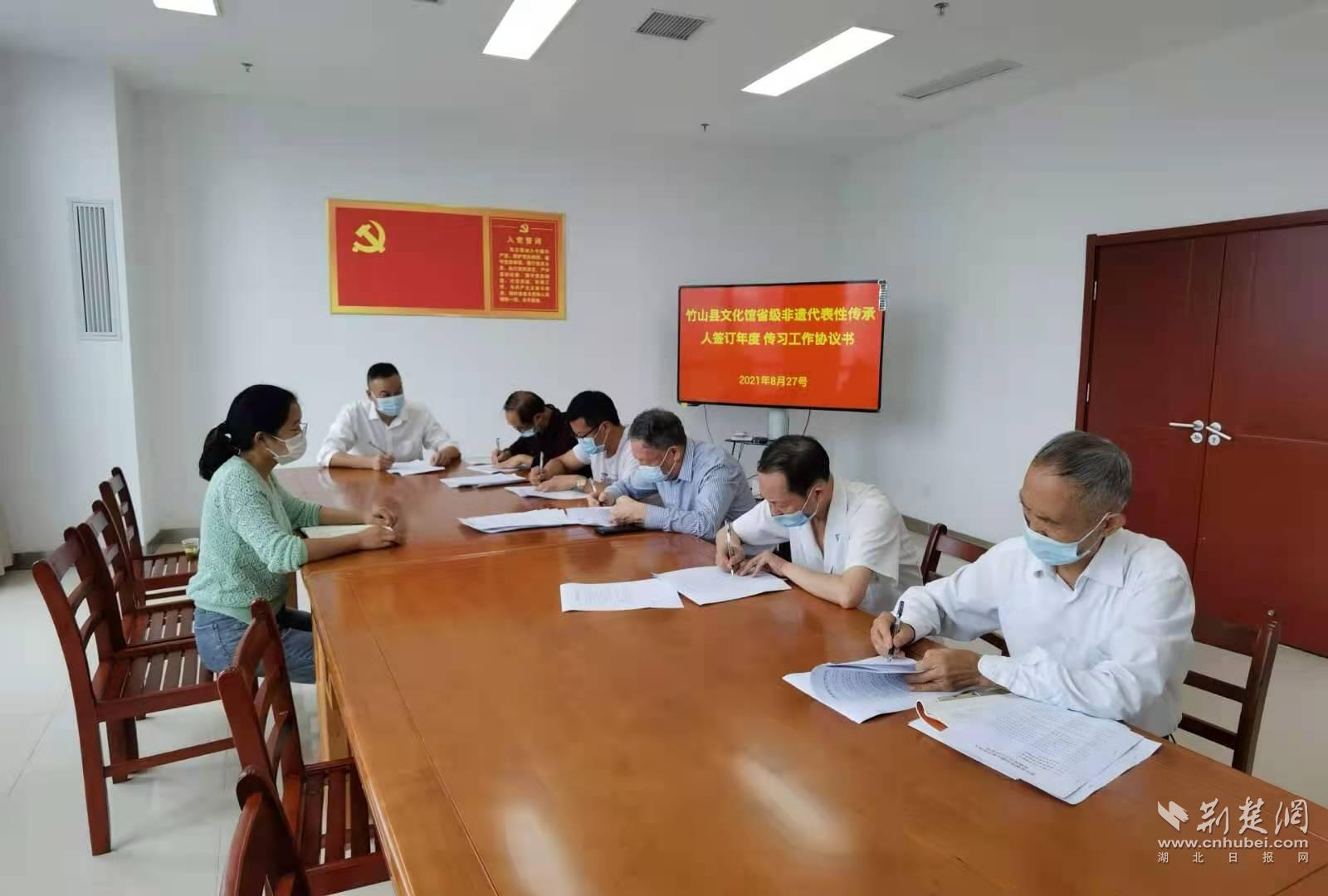 荆楚网(湖北日报网)讯(通讯员 章伟、严澄)近日,竹山县文化馆组织竹山5名省级非遗传承人签订《竹山县省级非遗项目代表性传承人年度传习工作协议书》。