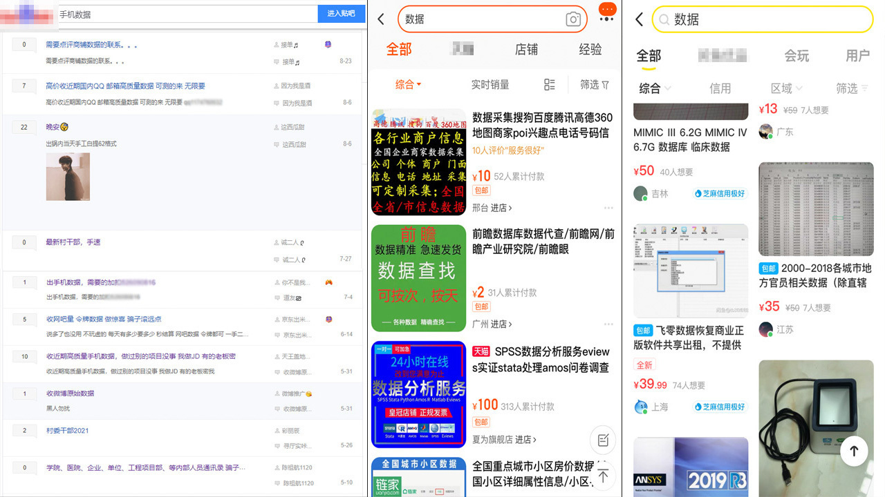 在百度贴吧上,一些个人隐私数据、行业数据被公开叫买叫卖。