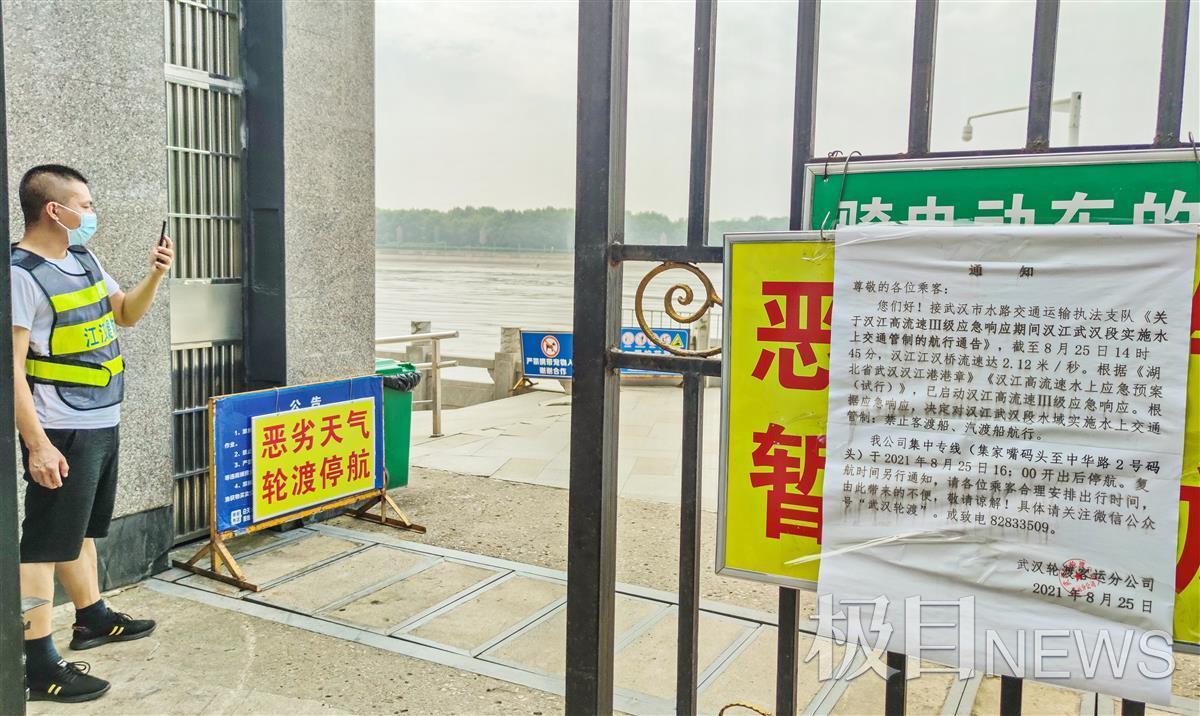 受汉江上涨洪水的影响,武汉轮渡武昌中华路至汉口集家嘴专线停航