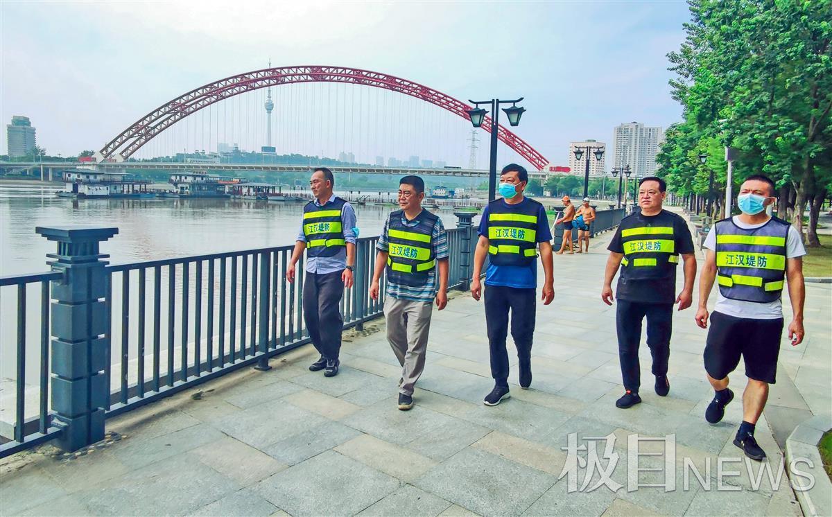8月29日,武汉市江汉区水务湖泊局堤防所防汛值守人员,在汉江的江汉责任段龙王庙集家嘴一带巡查排险,汉江防汛进入防洪设施巡查值守阶段。
