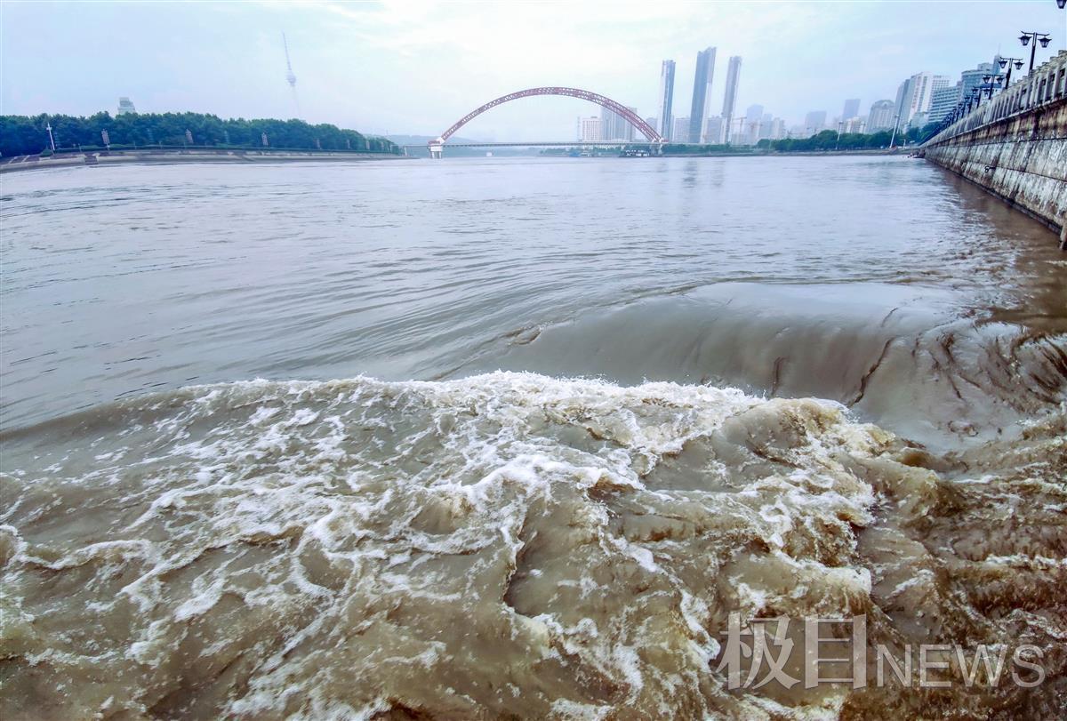 在长江汉江交汇的武汉汉口龙王庙,汉江洪水涌进了长江