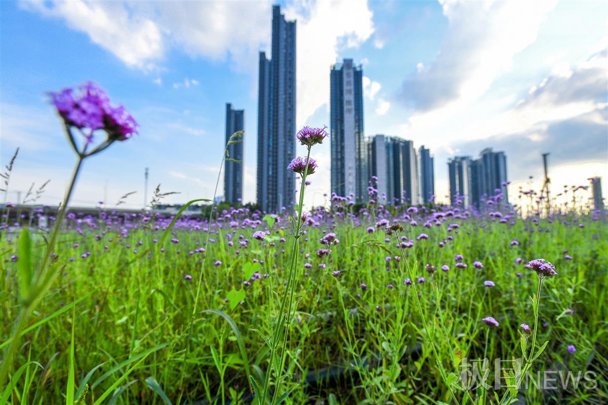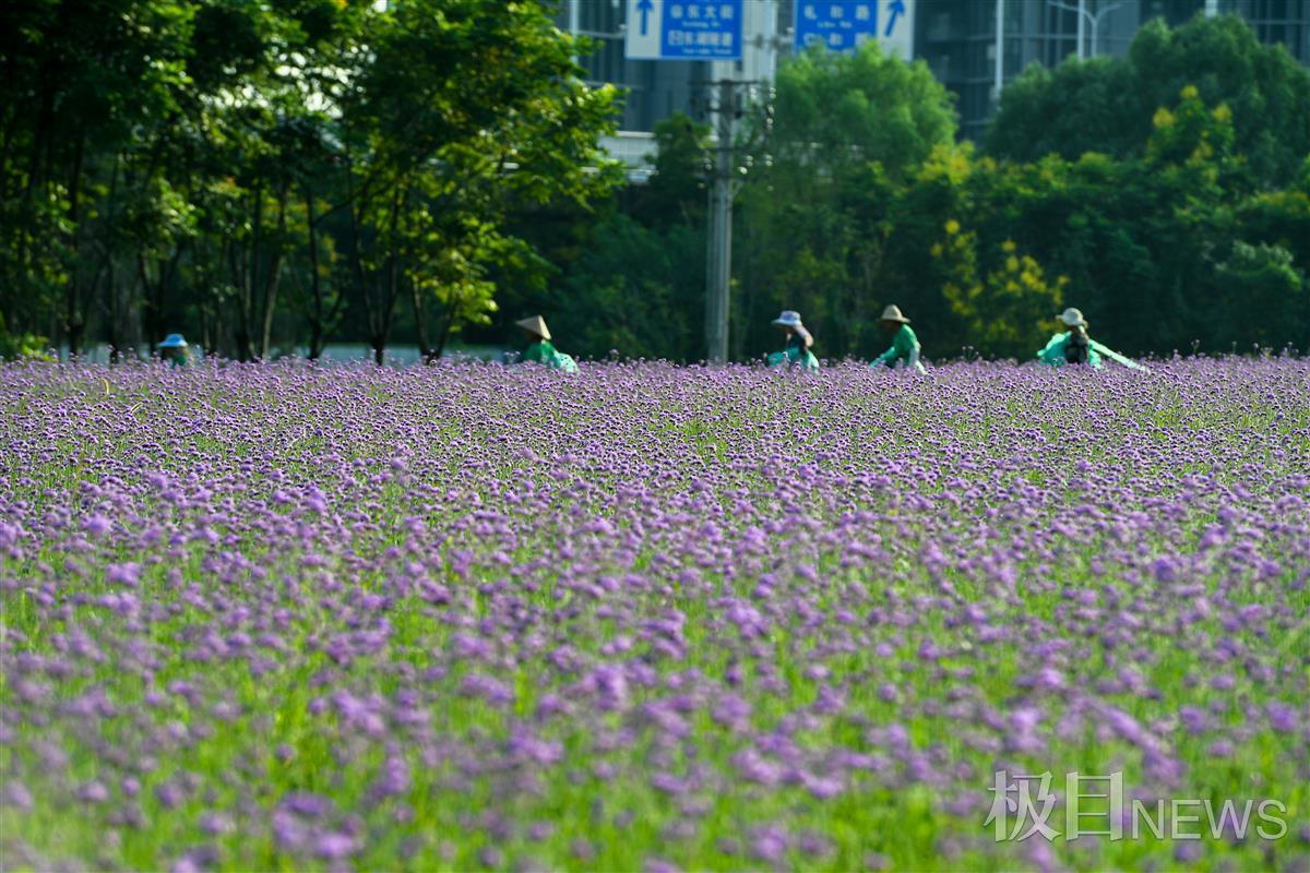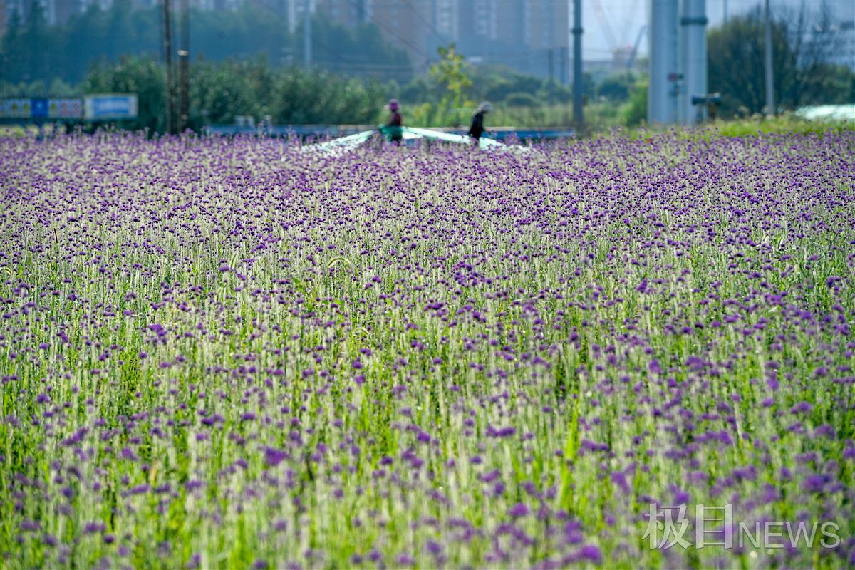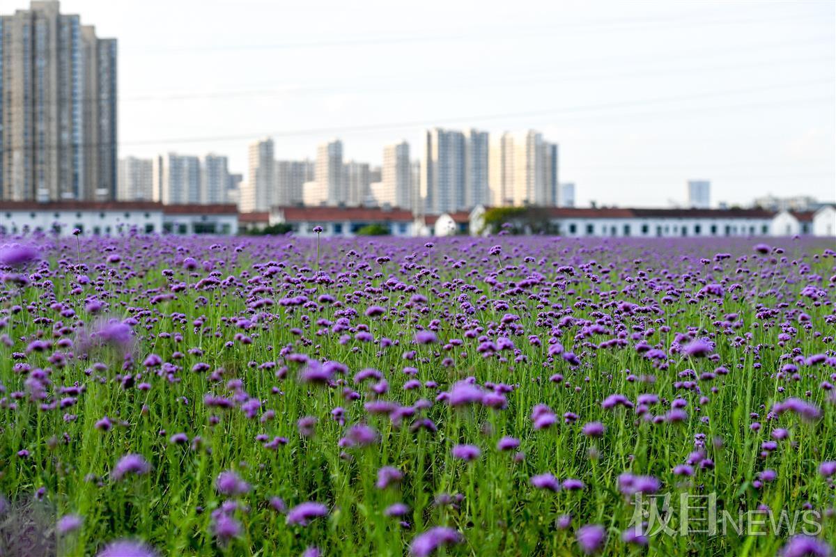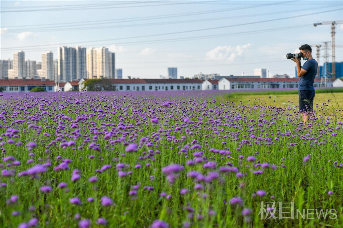 8月30日,坐落在武汉市洪山区杨春湖路,由北洋桥垃圾填埋场化身的北洋桥中央生态公园里,一片紫色马鞭草花正在绚丽开放,一眼看去风景迷人,让人沉醉在其中。